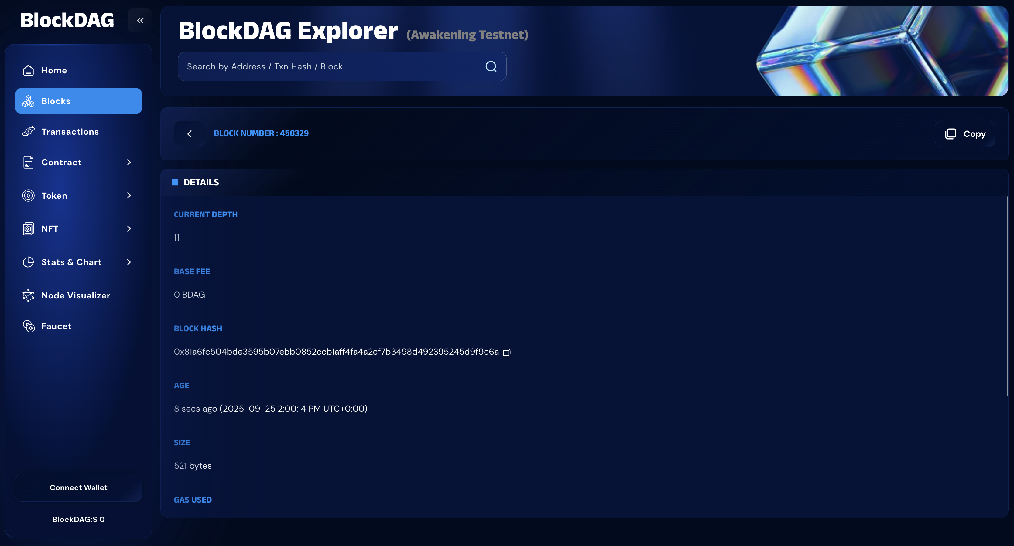 **Base Fee:** The base fee for this block is ***0.00000000007531912 BDAG***. The base fee is a mandatory transaction fee set by the network, dynamically adjusting based on network congestion. This fee is burned, preventing excessive inflation of the token supply.